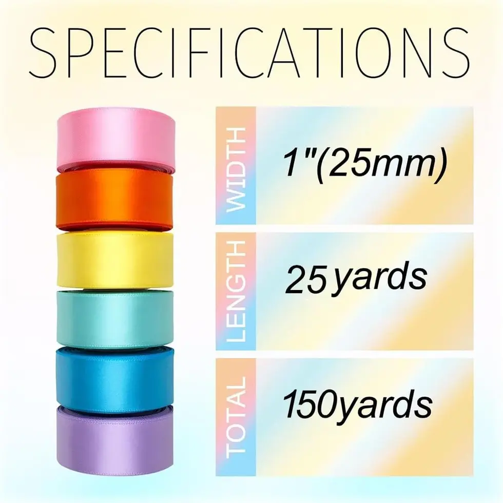 - Size & Package-- The ribbon width is 1 inch, with a length of 25 yards per roll, and a total of 6 rolls in different colors, totaling 150 yards. You could cut the ribbon length as needed. All satin ribbons are packed with plastic spool and keep in a plastic bag, which make it easy to use and prevents it from dirty.