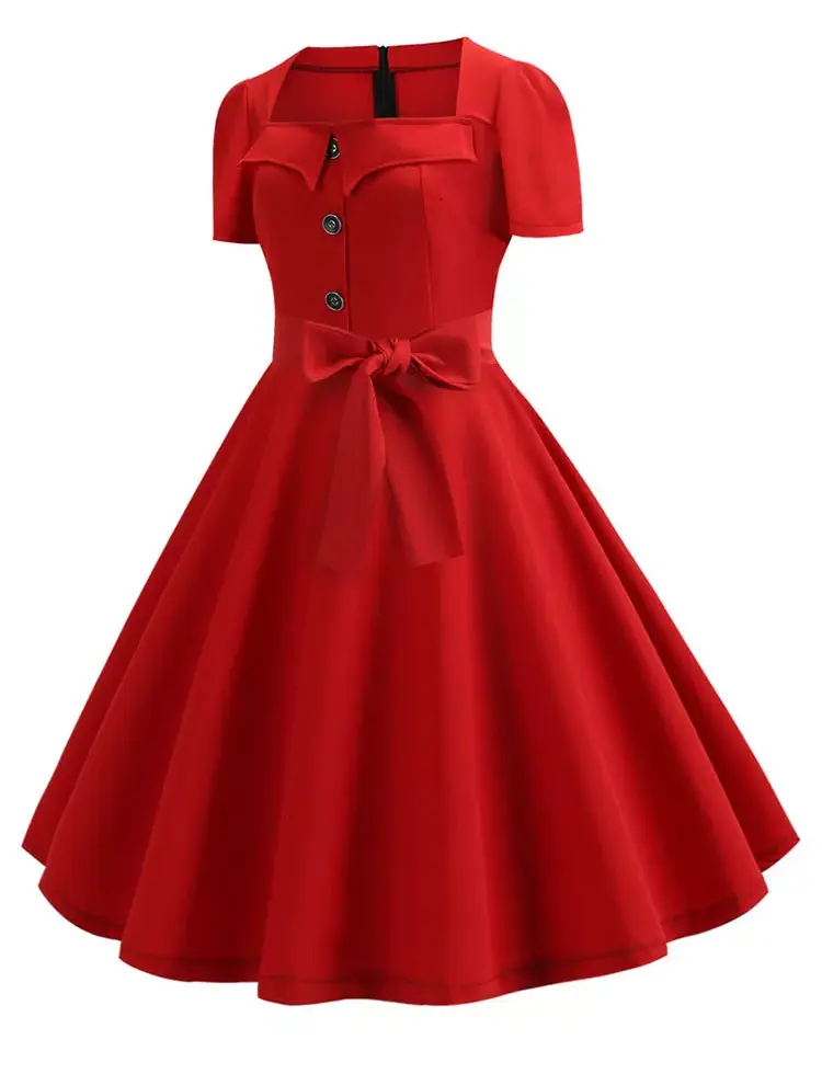 Women’s Summer Retro 50s Swing Dress – Elegant Vintage Rockabilly Red